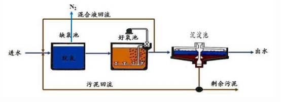 A/O脱氮除磷系统,即缺氧、好氧脱氮除磷系统。它是70年代主要由美国、南非等国开发的具有去除废水中氮污染物的工艺,同时对脱磷亦有一定的效果。其工艺流程是让废水依次经历缺氧、好氧两个阶段,故人们通称为缺氧、好氧脱氮除磷系统,简称A/O系统。A/O系统流程简单、运行管理方便,且很容易利用原厂改建,从而提高了出水水质。近年来已得到了越来越广泛的应用。