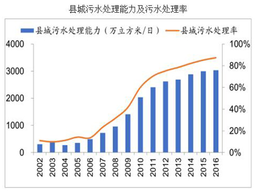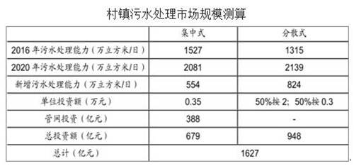 2、“十三五”村镇污水处理市场空间高达千亿元