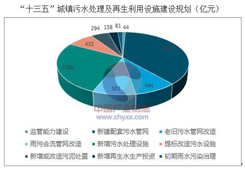 2、“十三五”城镇污水市场空间5644亿元