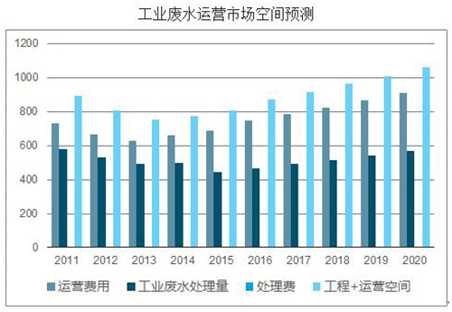 工业废水处理包含工程设施投资和运营两部分,由于目前工业废水处理设施产能利用率只有50%左右,因此“十三五”期间新建工程设施空间不大,升级改造的需求会有所提升,假设未来几年以5%的速度增长,到2020年工业废水治理工程设施投资额在151亿元。