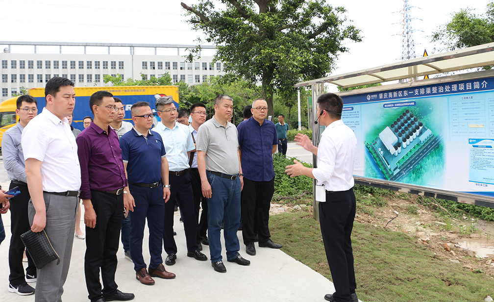 随后,环境商会访问团实地参观考察了鹏凯肇庆高新区东一支排渠整治处理项目污水处理设施建设情况,深入了解一体化污水处理应急设备工艺处理流程和设备运行状况。鹏凯环保王国彬董事长陪同现场接待和讲解,并就项目建设运营、城市黑臭水体治理经验与技术体系等方面进行了深入交流。