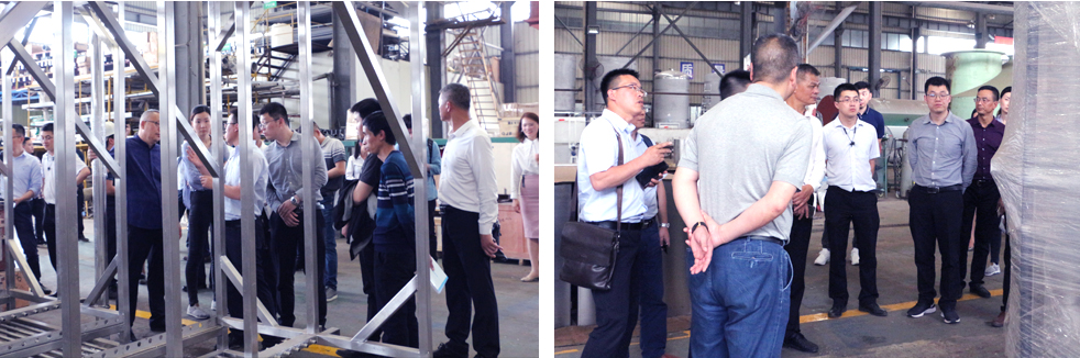 ▲王国彬董事长介绍项目工艺处理流程和设备运行状况