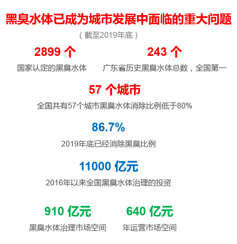 随着经济的不断发展,我国黑臭水体污染情况日益严重。2015年4月,《水污染防治行动计划》正式出台,明确提出到2020年,我国地级及以上城市黑臭水体控制在10%以内,到2030年,城市黑臭水体总体消除,从此正式拉开了我国黑臭水体治理的序幕。