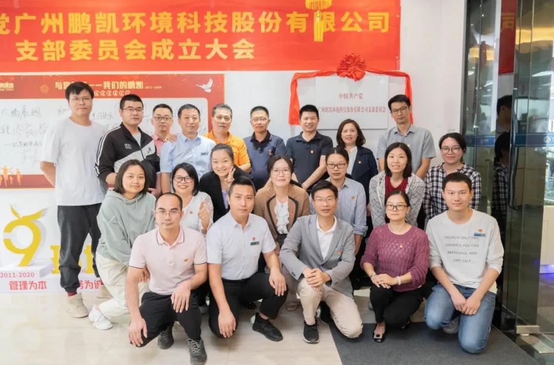 2020年11月12日上午,中国共产党广州鹏凯环境科技股份有限公司支部委员会成立大会于广州鹏凯环境顺利召开。