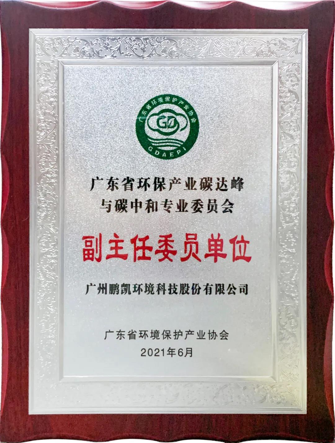 鹏凯环境被推选为广东省环保产业碳达峰与碳中和专业委员会副主任委员单位