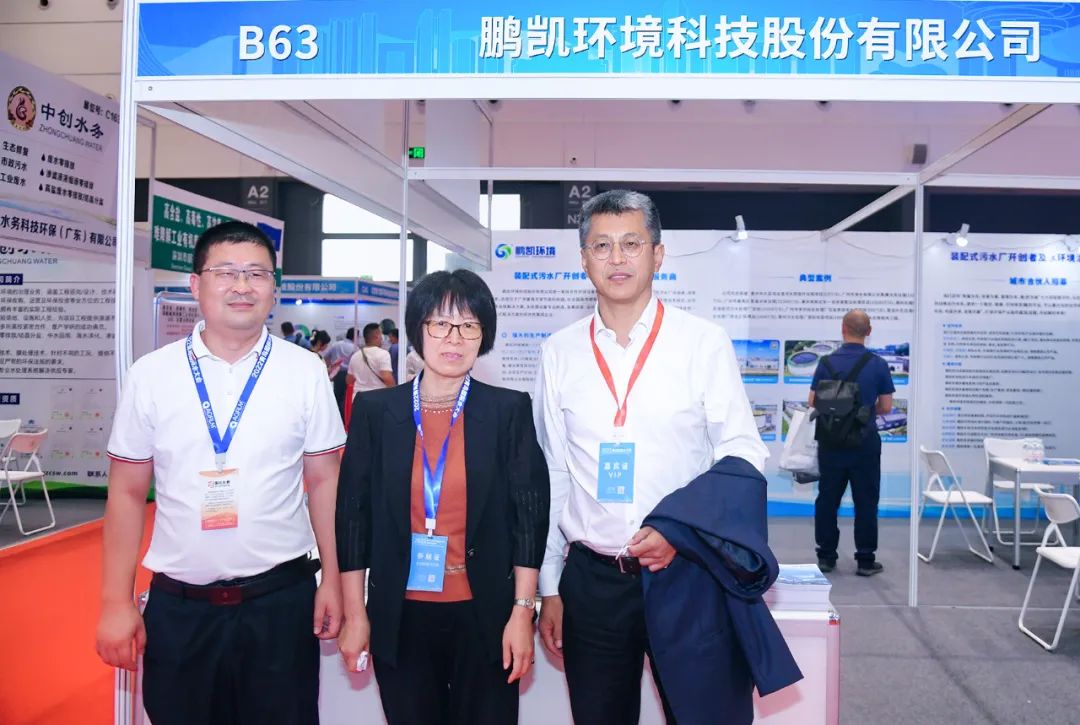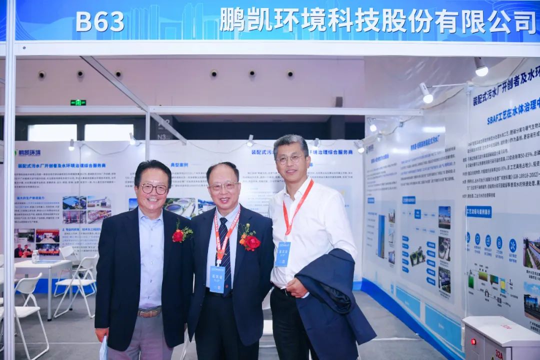 广东省环境保护产业协会秘书长易颂辉(中)莅临鹏凯环境展位参观指导。