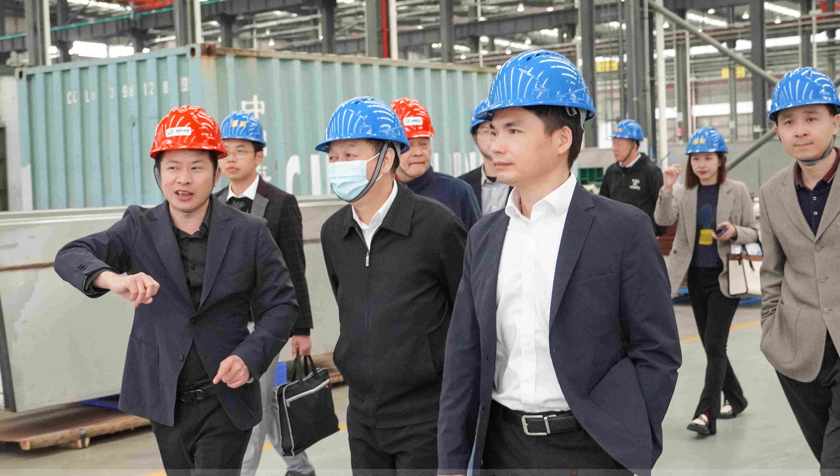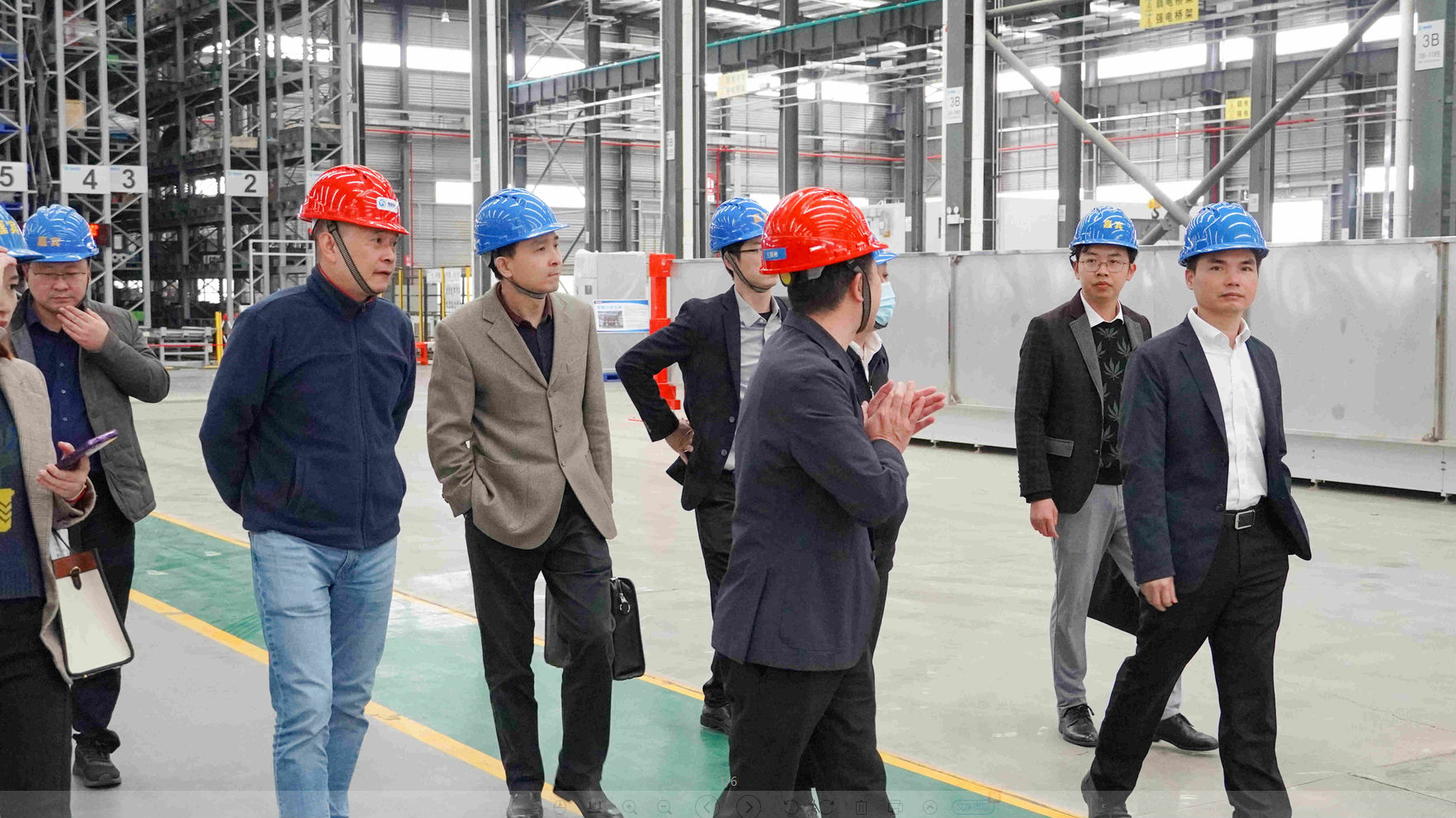 考察组领导一行实地考察了生产基地的自动化生产线、自动化立体仓储系统,深入了解鹏凯环境生产制造能力及自动化、智能化水平,并就装配式污水处理系统技术亮点和技术落地应用情况等展开交流探讨。