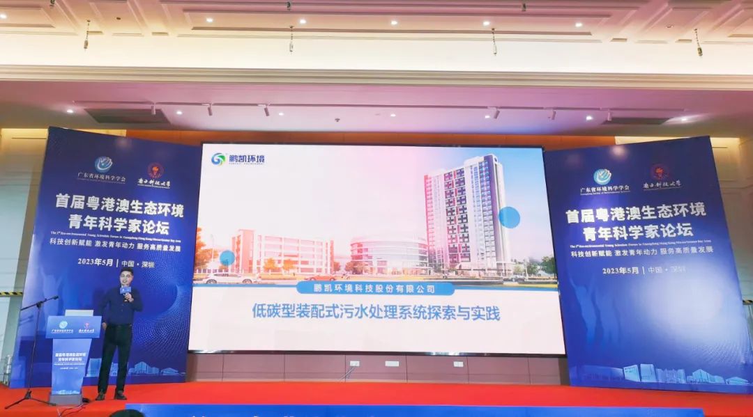 5月13-14日,由广东省环境科学学会主办,南方科技大学环境科学与工程学院、广东省环境科学学会生态环境青年科技工作者委员会、深圳市环境科学学会承办,鹏凯环境科技股份有限公司等单位联办的“首届粤港澳生态环境青年科学家论坛”在深圳市南方科技大学会议中心成功举办。四名院士和百余名青年科技工作者齐聚一堂,碰撞技术思想,探讨科技成果转化,共同推动粤港澳生态环境科学技术和生态环境产业高质量发展。作为此次论坛的联办单位,鹏凯环境受邀参加专题论坛——科企成果转化联合创新高质量发展分论坛,分享鹏凯环境污水处理领域科技成果以及校企联合科技成果转化路径。
