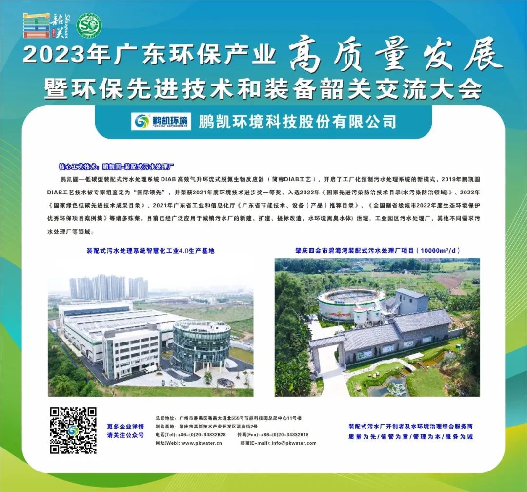 鹏凯环境作为装配式污水厂领导者、开创者以及水环境治理综合服务商受邀参加本次大会。本次大会汇聚了政府、企业、科研高校等各方力量近300人, 共享最新环保技术与知识、共探产业创新转型的路径,共绘环保行业新格局蓝图。