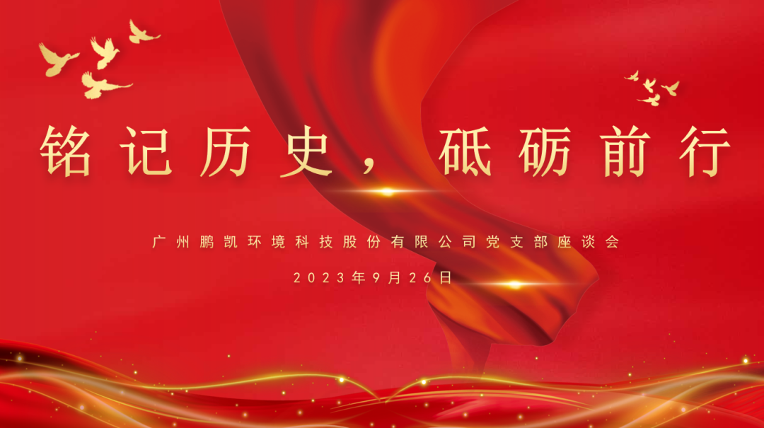 中共广州鹏凯环境科技股份有限公司支部委员会,于2023年9月26日下午举办“铭记历史 砥砺前行”纪念“九一八”事变专题党建活动,深入学习习近平总书记关于抗战精神的重要论述:结合中国人民抗日战争胜利纪念日、九一八事变纪念日,为实现公司制订的百亿宏伟目标而努力奋斗!