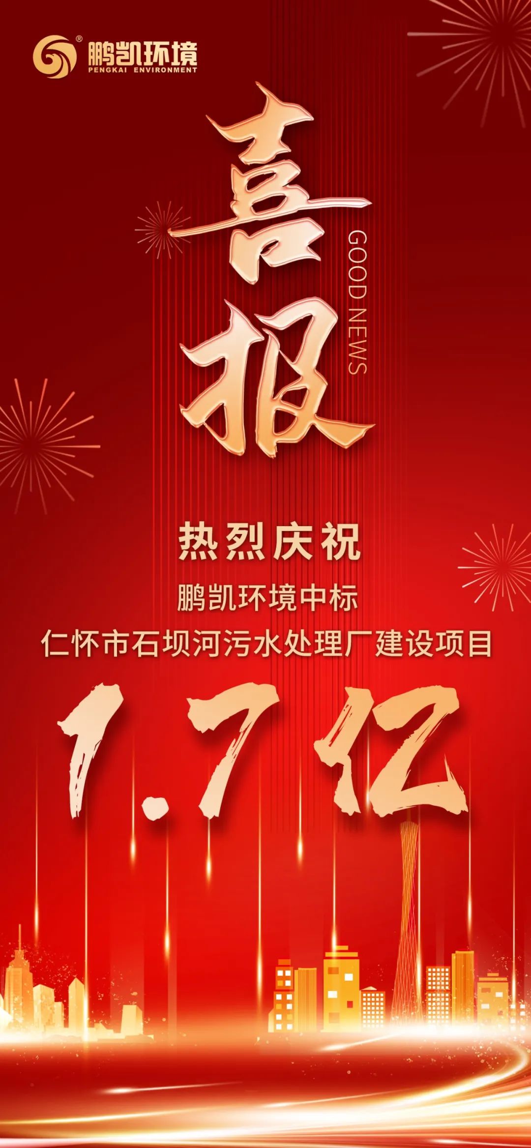 时至十月捷报传,跃马扬鞭启新程。近日,鹏凯环境成功中标仁怀市石坝河污水处理厂建设项目!中标金额超1.7亿!这是对我司酿酒废水处理综合实力、技术水平、服务态度的肯定!