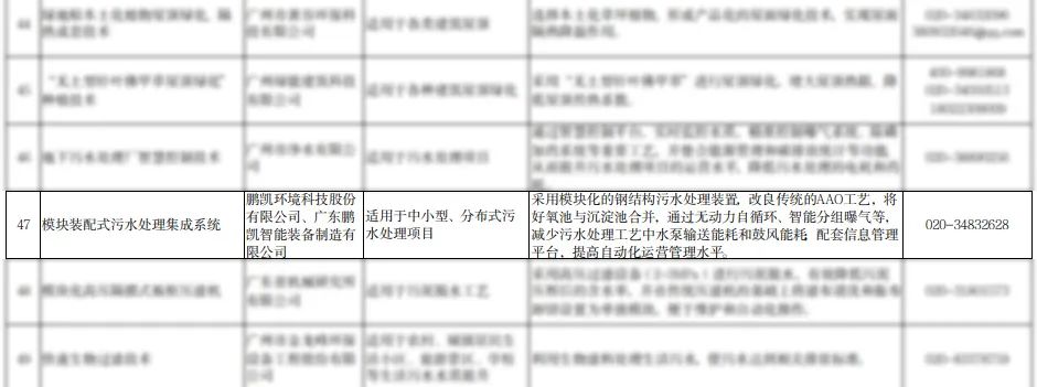 为加快先进绿色技术推广应用,根据《广州市绿色技术征集推广工作方案》,广州市发展和改革委员会开展了2023年绿色技术征集工作,经过企业申报、资料审核、现场核查、专家评审等程序,编制形成了《广州市绿色技术推广目录(2023年本)》,鹏凯环境所研发的模块装配式污水处理系统荣耀入选。