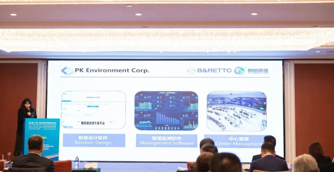 在 “一带一路”绿色低碳技术创新合作与交流论坛上,鹏凯沅(深圳)科技有限公司销售经理谢丽华向与会人员详细介绍我司核心产品装配式污水厂创新工艺技术以及应用案例,为共建绿色“一带一路”,应对全球性环境挑战贡献力量。