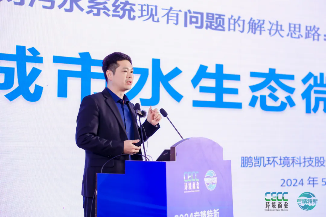 在此次盛会中,鹏凯环境集团研究院副院长朱枭强正高级工程师作《城市水生态微循环系统》专题演讲,不仅向与会者分享了前沿绿色技术与新型治水模式,还深刻阐明了环保科技与生态文明建设相融合的核心理念。
