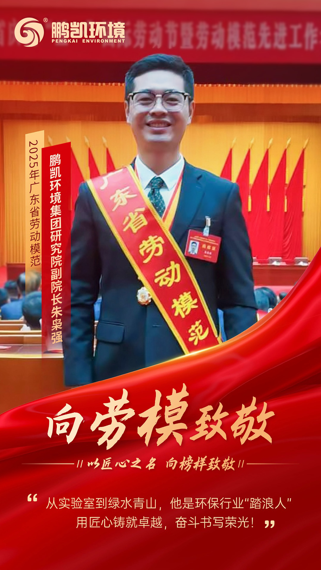 4月29日上午,2025年广东省庆祝“五一”国际劳动节暨劳动模范、先进工作者和先进集体表彰大会在广州举行。鹏凯环境集团研究院副院长朱枭强博士荣获“广东省劳动模范”荣誉称号。