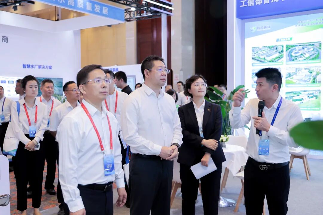 粤港澳大湾区节水产业高新技术设备博览会上,水利部全国节约用水办公室主任蒋牧宸、水利部珠江水利委员会副主任易越涛等领导莅临鹏凯环境展位,实地考察并指导工作。鹏凯环境董事长兼总裁王国彬向巡展领导就我司低碳治水技术创新与实际应用情况作了详细汇报。以科技创新赋能污水处理技术低碳高效发展,助力节水产业发展,共绘节水产业宏伟蓝图。